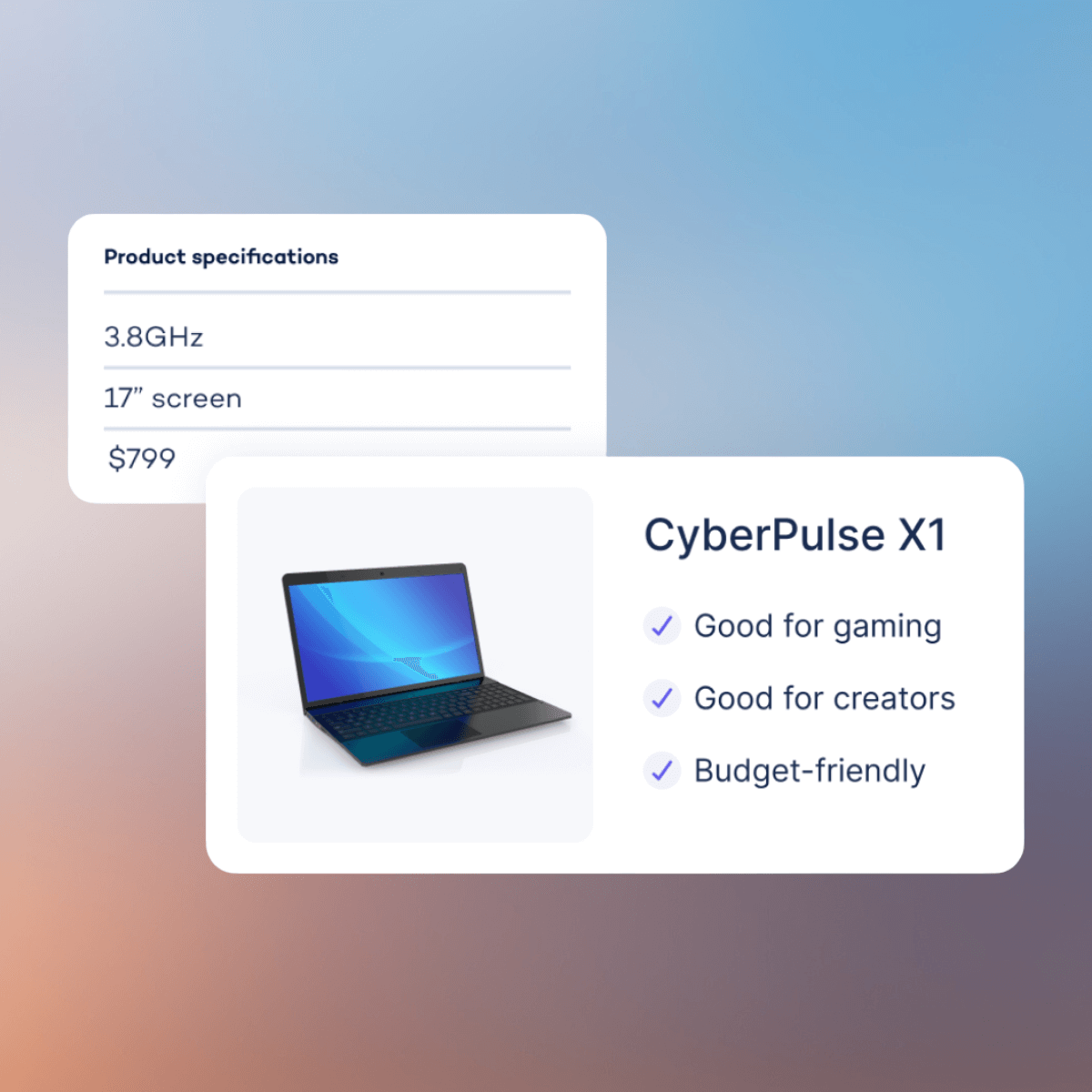 Nutzen Sie konversationsbasierte Abläufe und angereicherte Produktdaten, um Kunden schneller, gezielter und mit weniger Reibung zum passenden Produkt zu führen.
